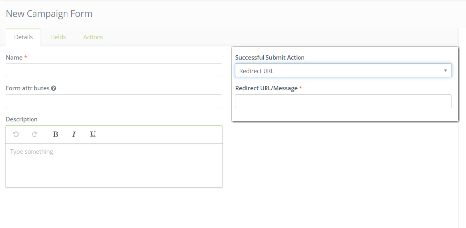 - In the details page of your form , under “Successful Submit Action”, select “Redirect URL”