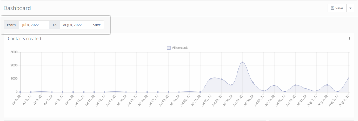 All the widgets will display data in the selected global date range filter at the top of the widget list.   (Shown below)