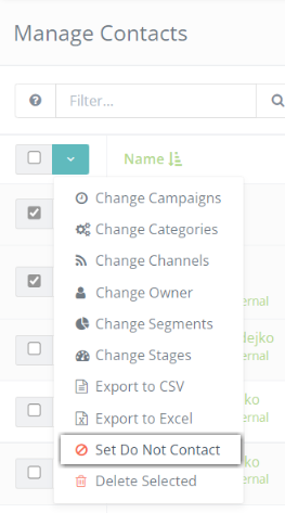 On the “Manage Contacts” page selected the contact(s) that no longer want to be contacted
