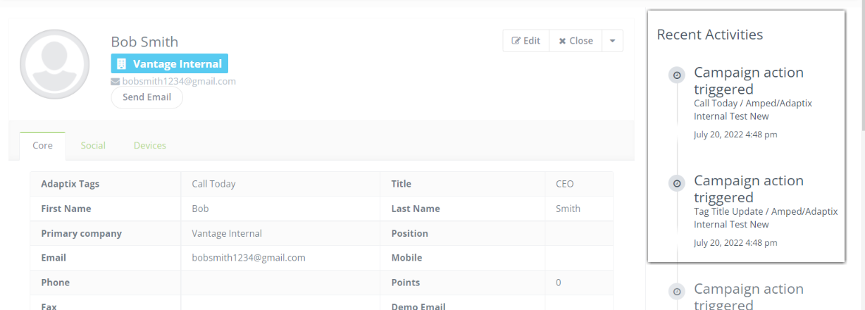 When a contact is unsubscribed from your list, we’ll display the date and time of that unsubscribe in the ‘Recent Activities column located on the Contact’s profile page.
