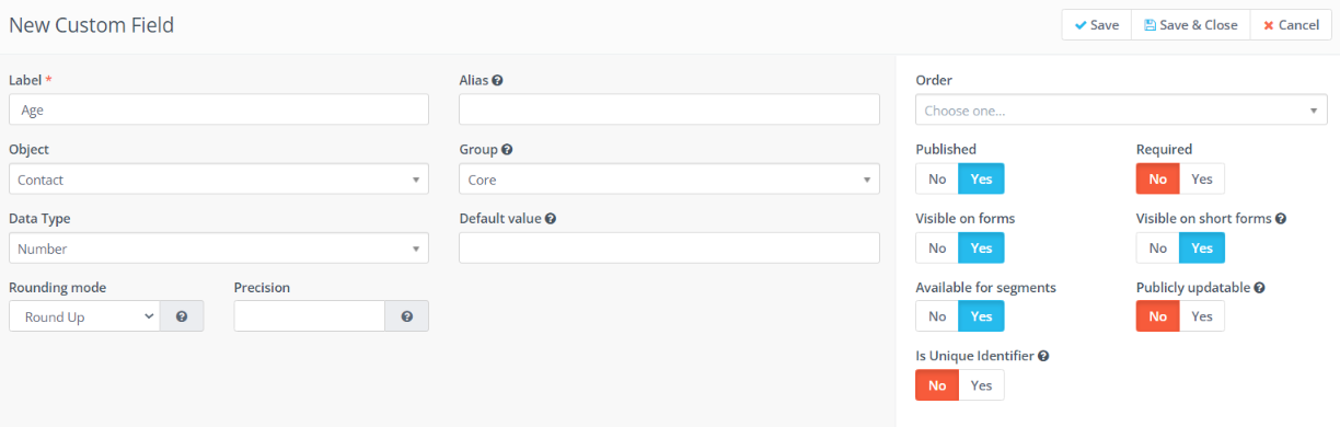 For example, if you want to add the contacts age as a custom contact field on your contacts profile