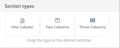 You can organize your sections by One , two , or three columns. To add a section to your email you simply click on the type of section you want to add and drag it over the the email template.Â