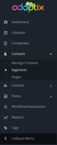 On the Adaptix menu under “Contacts”, you will find a segments tab.